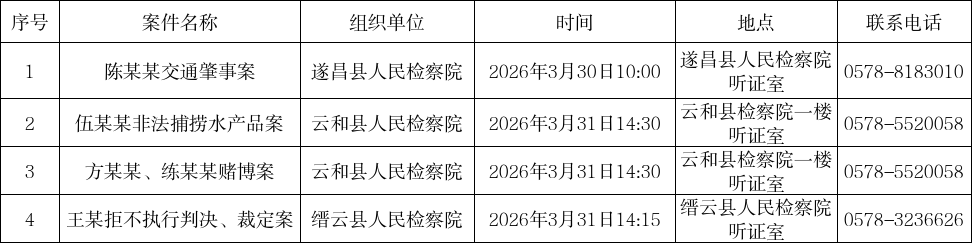 • 丽水市检察机关听证案件统一预公告